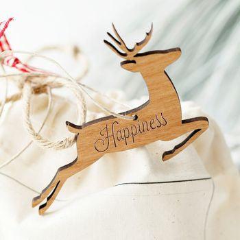 Choose your wishes for the person for the year ahead - wealth, health, love, happiness, Christmas cheer, parties, fun! etc and choose from a variety of different shaped decorations from lucky Christmas elves to mistletow or a leaping stag.