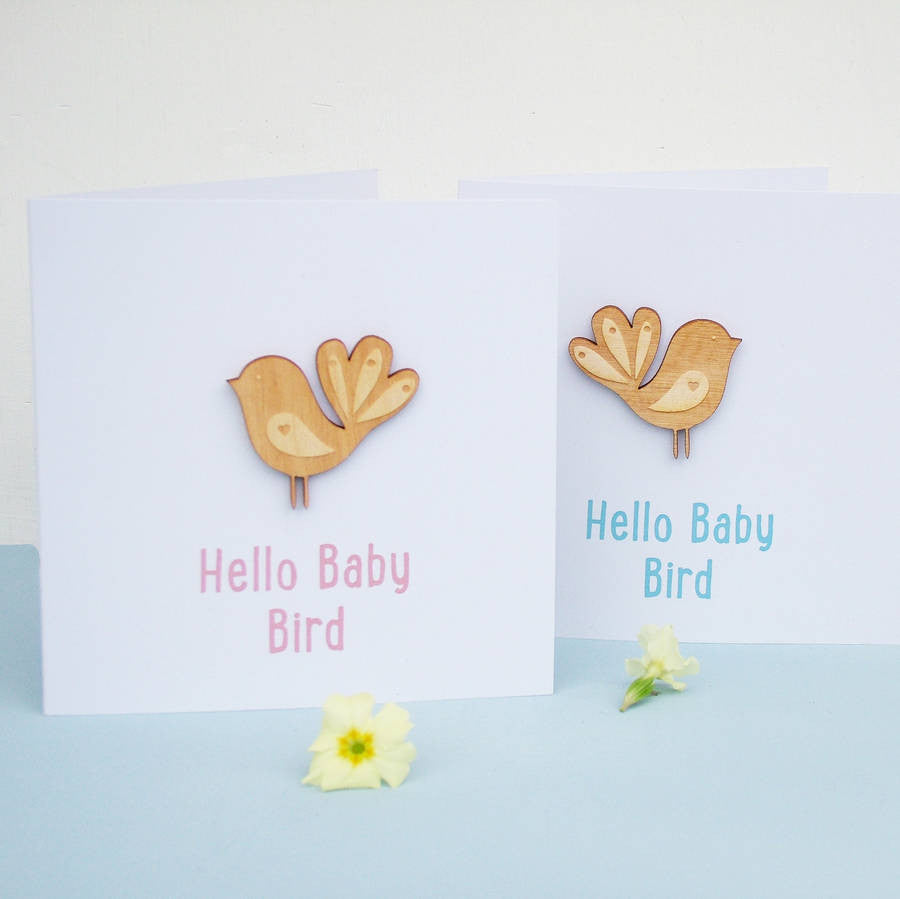 Our Wooden baby bird card is designed and made here in the Seahorse workshop. We cut and engrave the sweetest little wooden bird and mount it on quality recycled card, printed with your own text in a choice of pretty colours. Add "Hello Baby bird" or a baby name or a short message of your choice. This card can be framed and hung at home or in the nursery and makes a magical little keepsake.